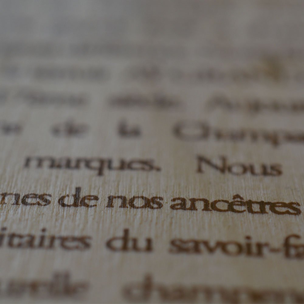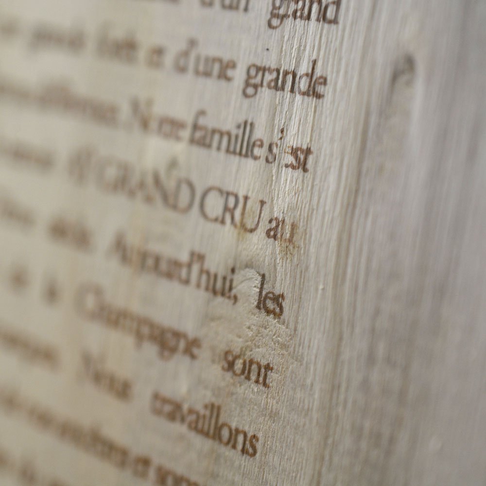 Nous travaillons des essences nobles — notamment le peuplier local, pour sa finesse et son esthétisme — et adaptons les dimensions au millimètre pour respecter la diversité des formats champenois.